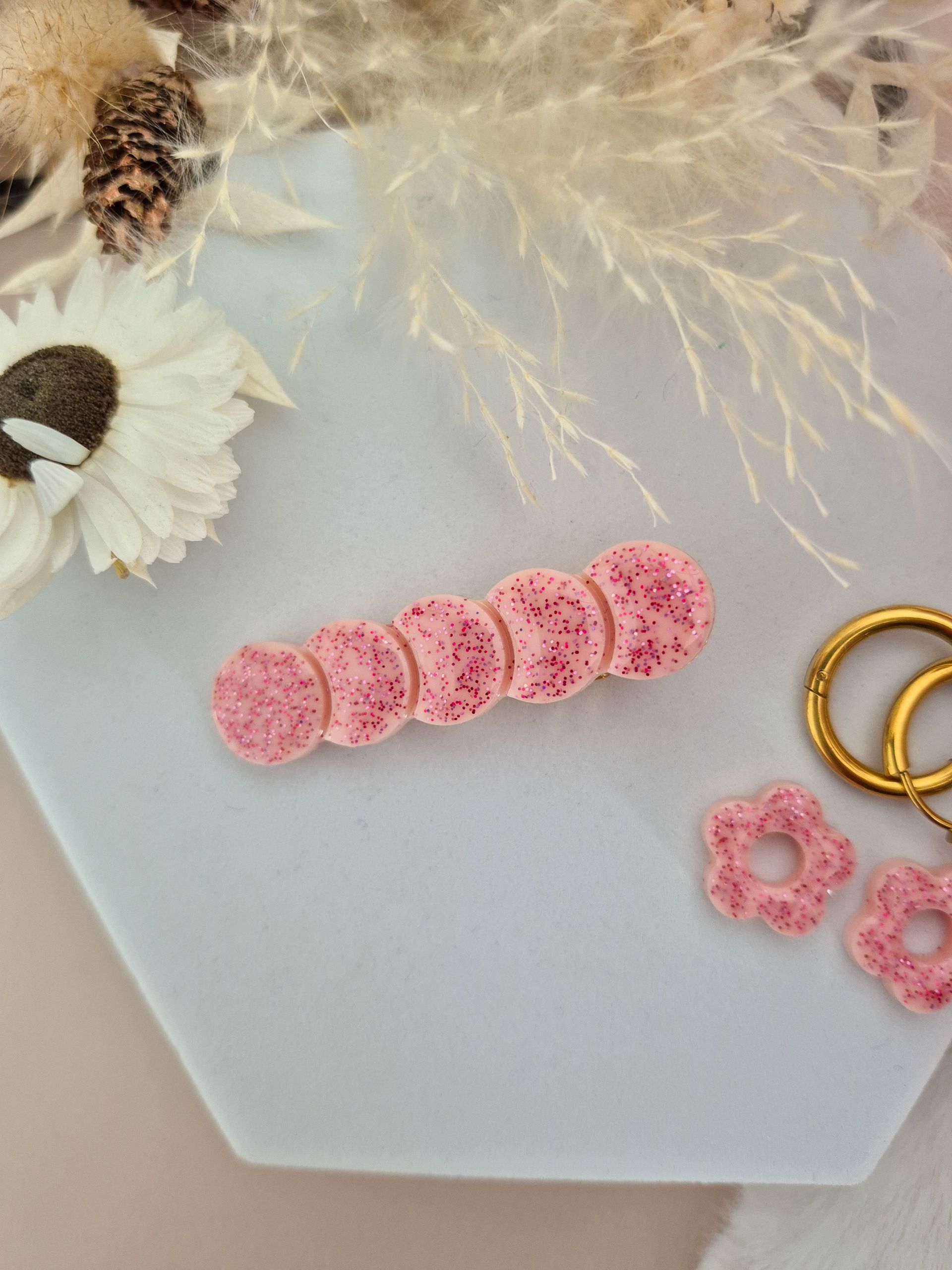 Chaque barrette est faite main, en résine de marque française, avec inclusion de paillettes.