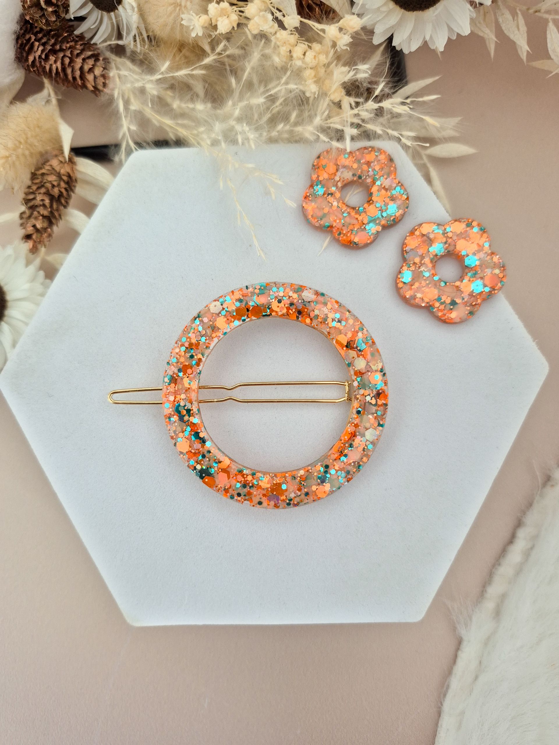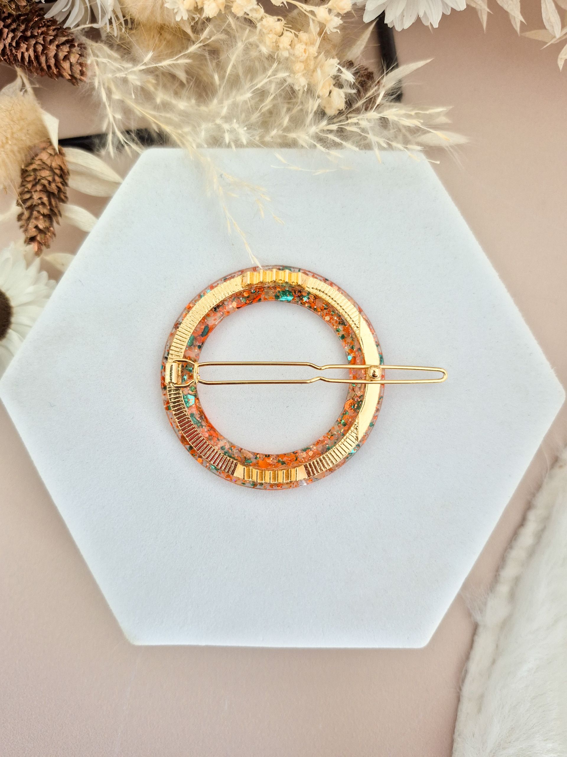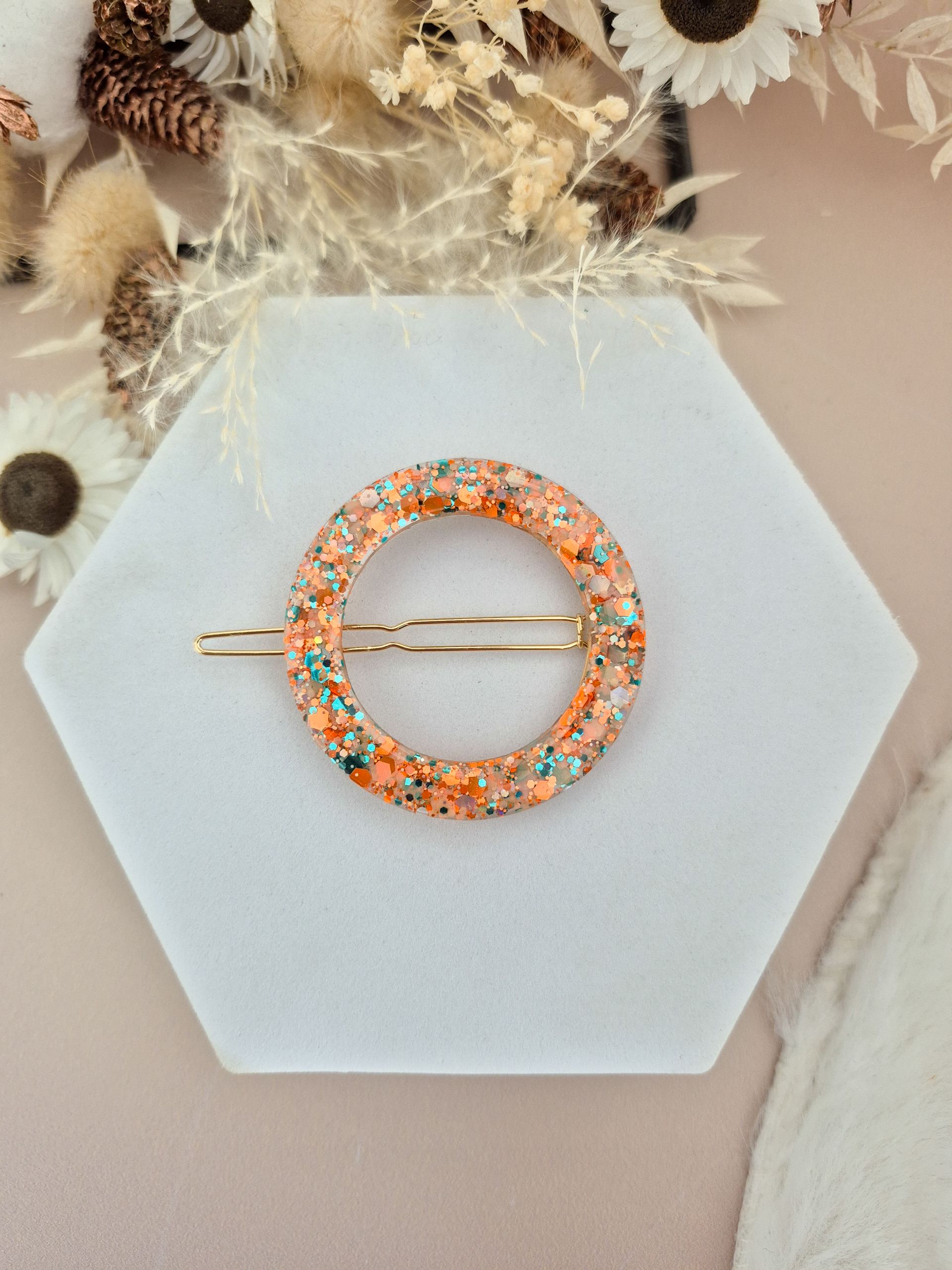 Chaque barrette est faite main, en résine de marque française, avec inclusion de paillettes.