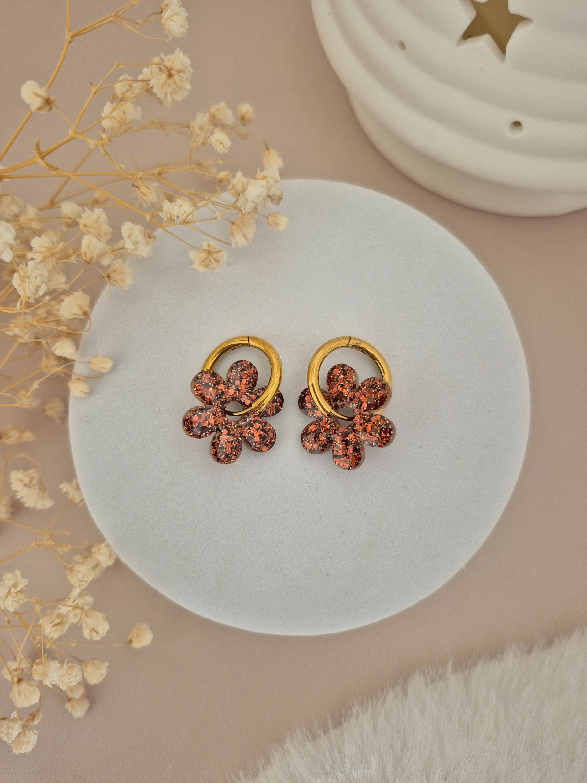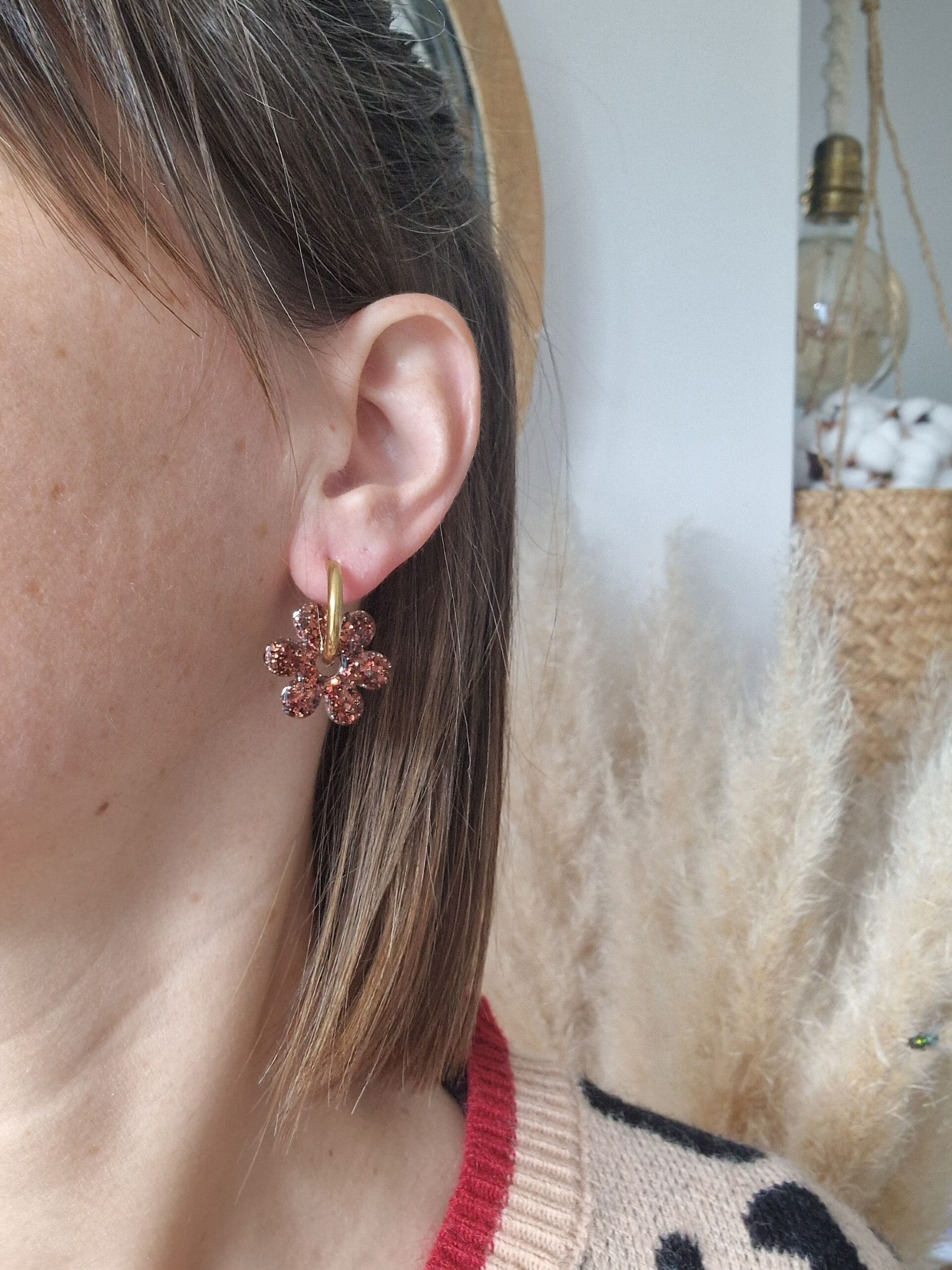 La fleur est faite main, en résine epoxy de marque française, avec inclusion de paillettes.