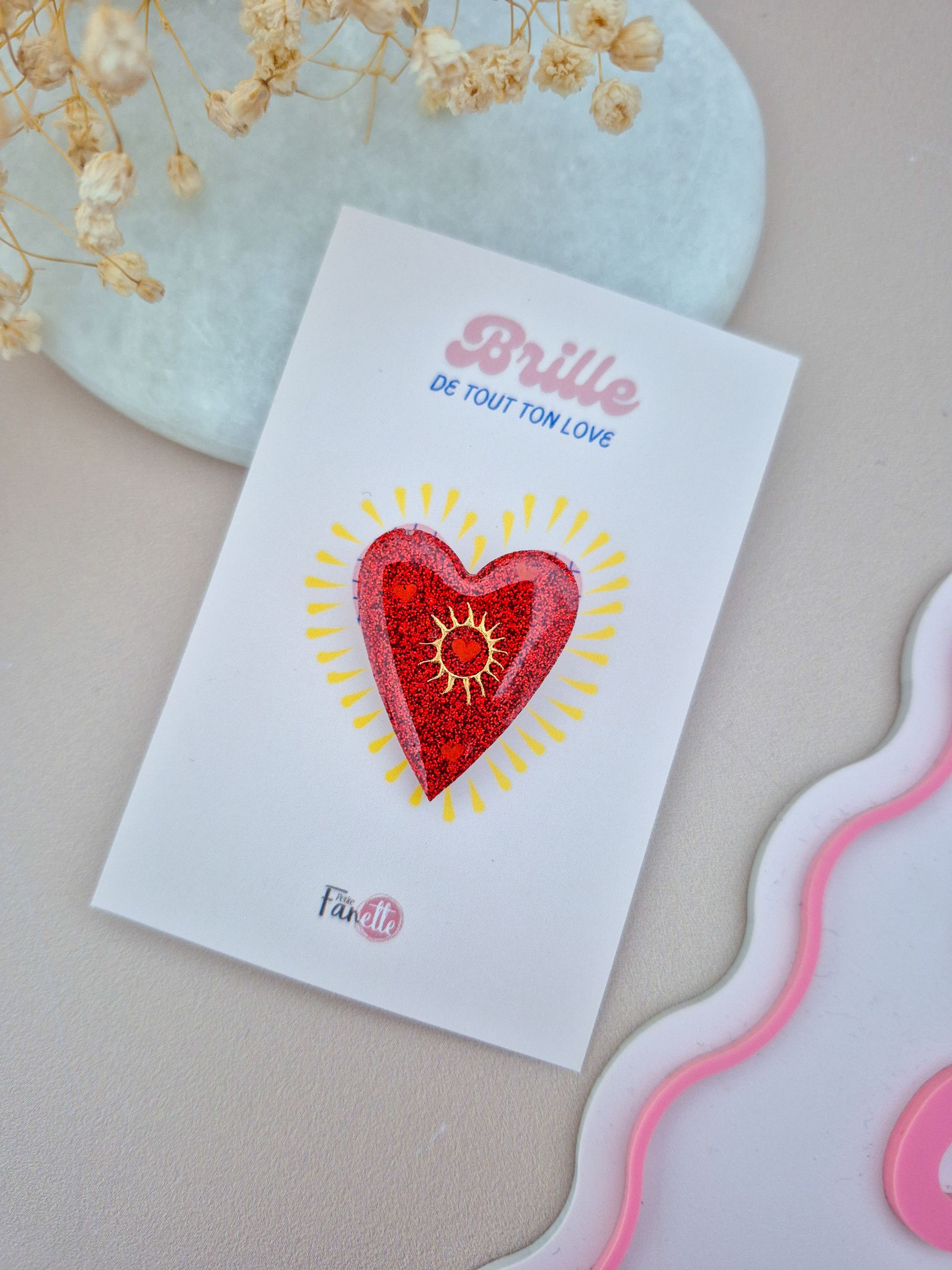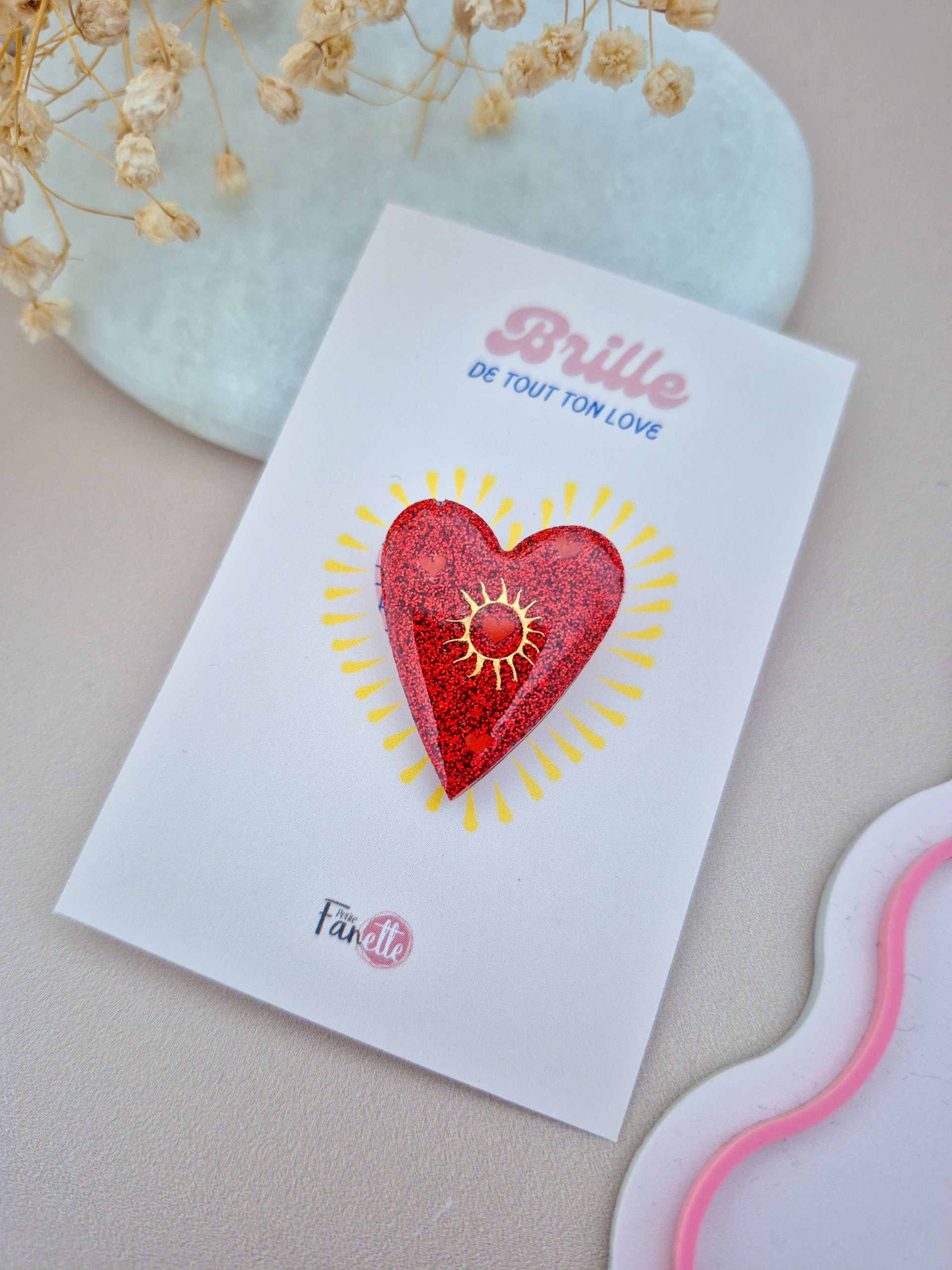 - Support : Présentées sur une carte au design unique avec le message « Brille de tout ton Love »