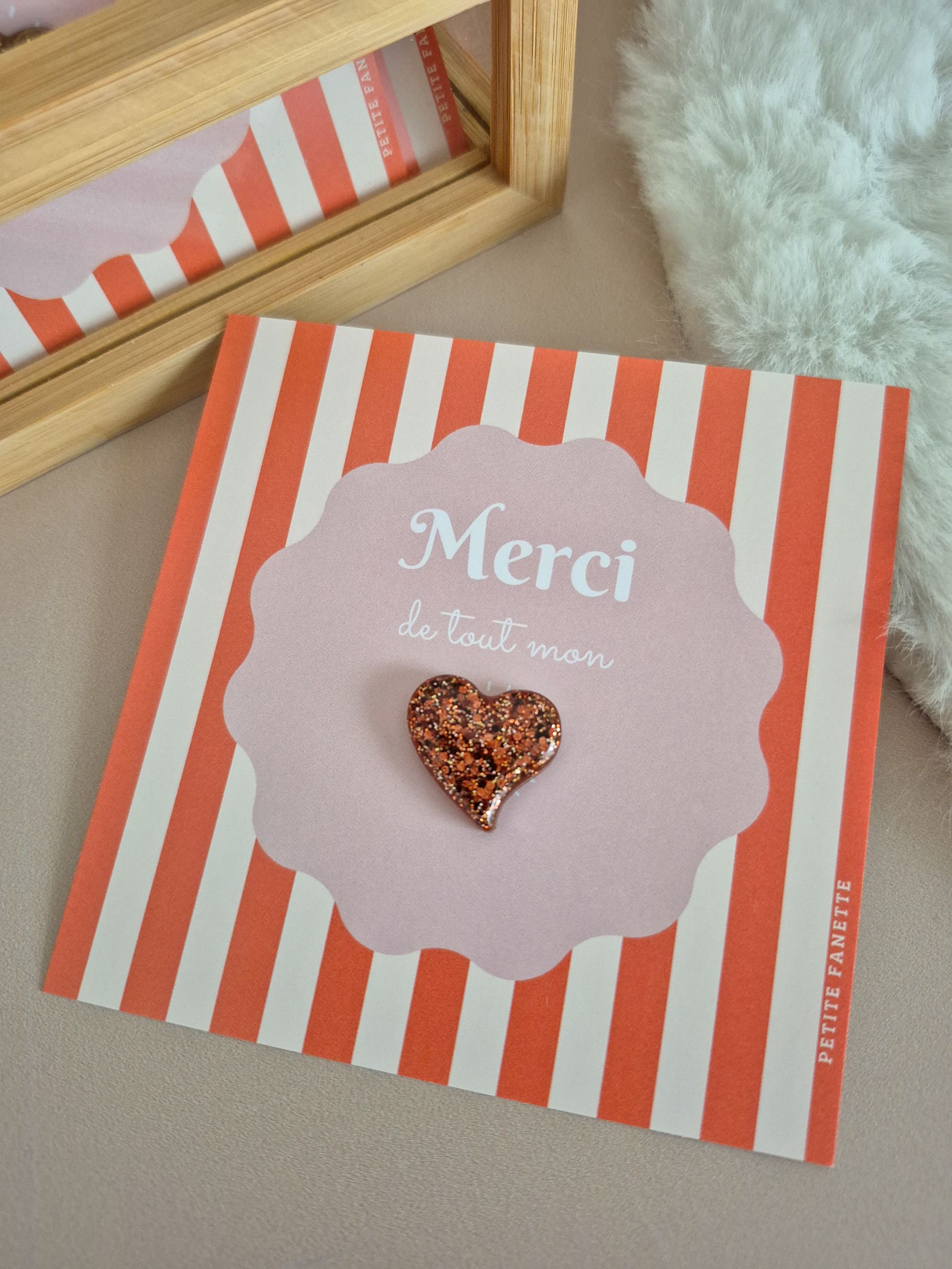Offrez un petit mot doux plein de paillettes avec ce pin’s coeur en résine a la fois délicat et éclatant.