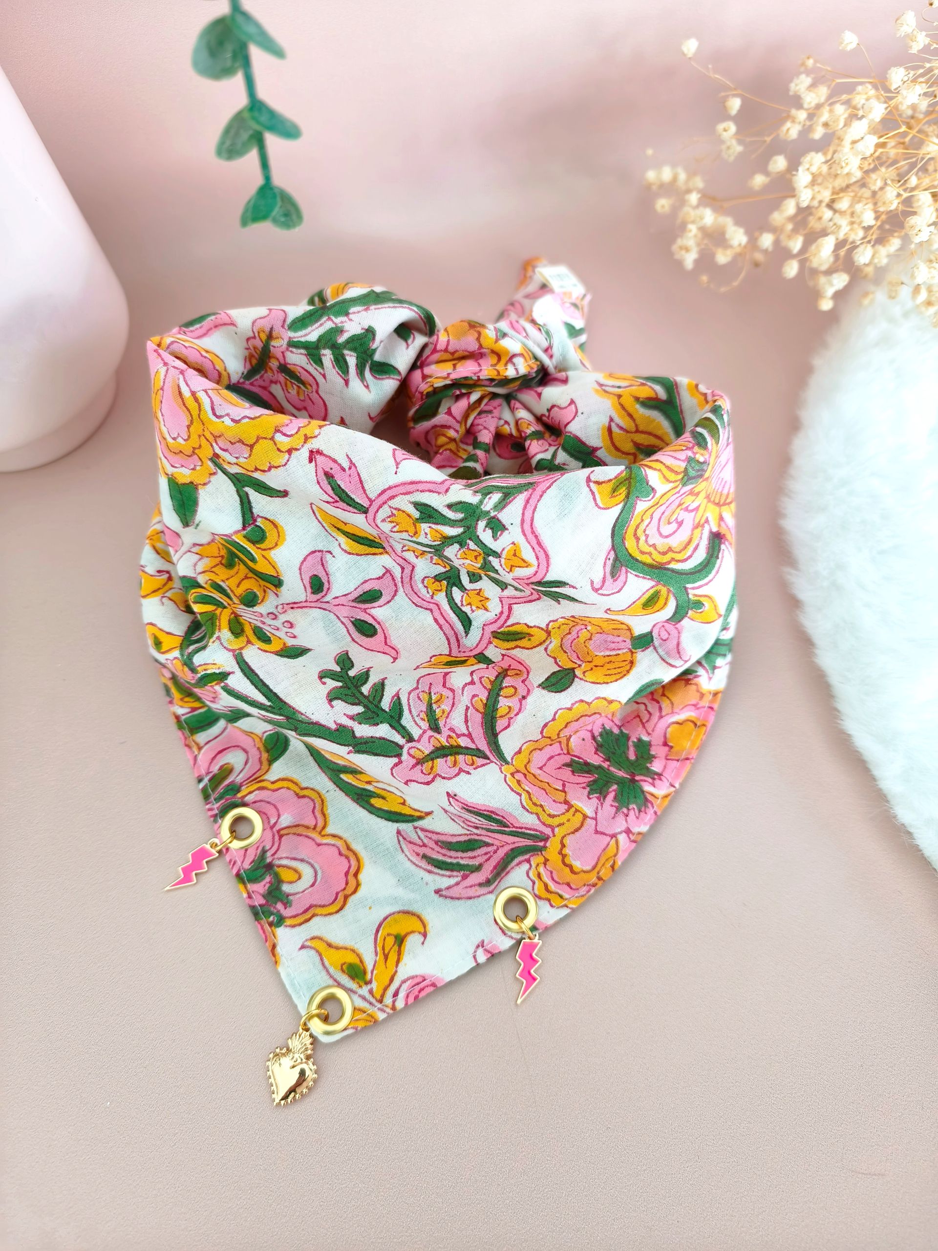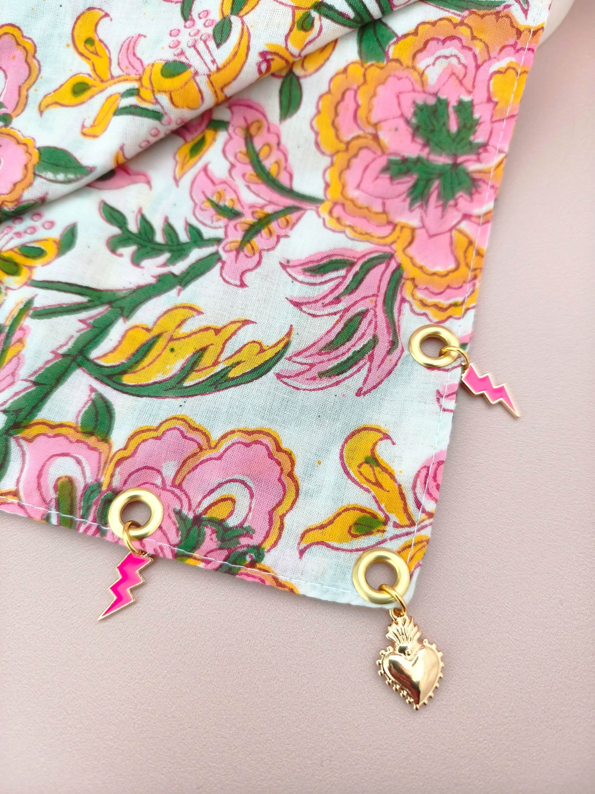 - Entretien : Lavage à la main ou en cycle délicat, à froid. Séchage à l’air libre pour préserver la beauté des tissus et charms.